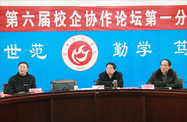 会上,党委书记何小祥同志做了重要讲话。他指出,通过对论坛的交流,有三点深切的感受,即达成了共识、扩大了视野、创新了路径。他指出,校企论坛成功举办了六届,论坛已经形成了一个共识。无论一个地方、企业、事业,要想立于不败之地,成长壮大,一个重要因素就是走向联合。作为企业,在竞争中要有技术创新;作为学校,教育发展要寻找出路,要更好地服务地方、社会、经济,企业有超人之举,学校也要有过人之处。这些就需要通过协作、联合来完成,这也就是共识。何书记强调,规划未来需要从宏观着眼、微观着手。要有宏观视野,一定要瞄准世界科技发展的大趋势,经济发展的大格局;一定要瞄准国家“十二五”发展规划、中长期发展规划,做好下一步工作。要从微观上着手,一定要瞄准合作的领域,不断推进产业的转型升级;一定要瞄准世界发展前沿,微观上操作。学校也一样,也要进行结构调整,专业设置要更加适应社会发展需要。调整结构,提升内涵,形成特色。今后在规划未来合作上,我们会打开校门,到社会上寻找更广阔的合作平台。何书记指出,要合作共赢,广度要扩展、重点要突破、层次要提升、机制要创新、服务要保障,要敢于冲刺,在特色上用心琢磨。