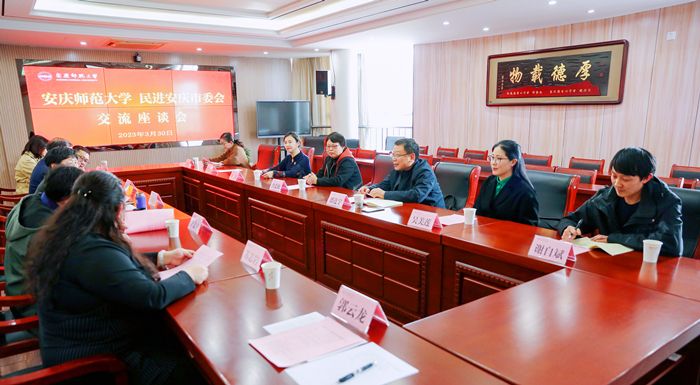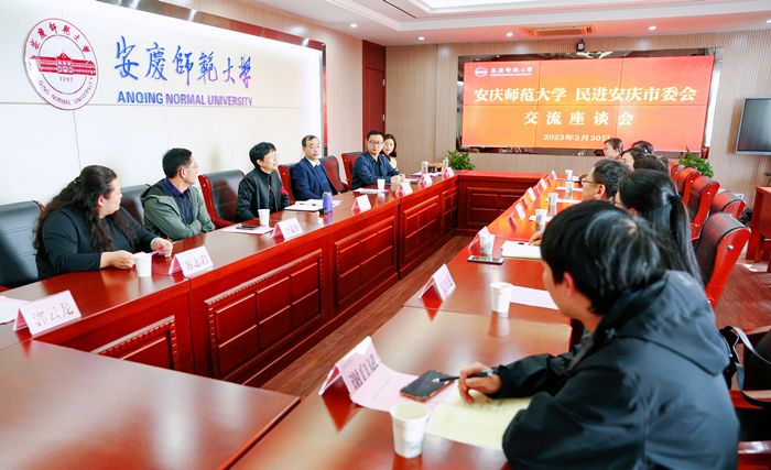 3月30日,民进安庆市委主委潘连宇一行来校走访交流。全国人大代表、民进安徽省委副主委、校长彭凤莲出席座谈会。党委统战部负责人和学校民进会员代表参加会议。