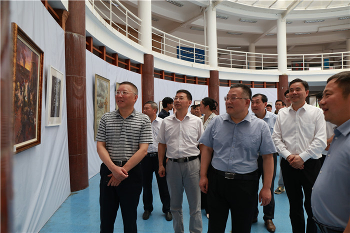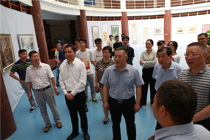百年辉煌历程,百年丰功伟绩。为庆祝中国共产党成立一百周年,弘扬和继承中国共产党的优良传统,营造良好的红色学习氛围,6月29日,庆祝中国共产党成立100周年美术设计作品展开展。党委书记许继荣,党委副书记、校长闵永新,党委副书记吴照明,党委常委、副校长汪时珍、刘友忠,党委常委、纪委书记胡腊香,党委常委、副校长吴琼,党委常委、组织部宣传部部长余精华等校党政领导和广大师生一起观看了画展。