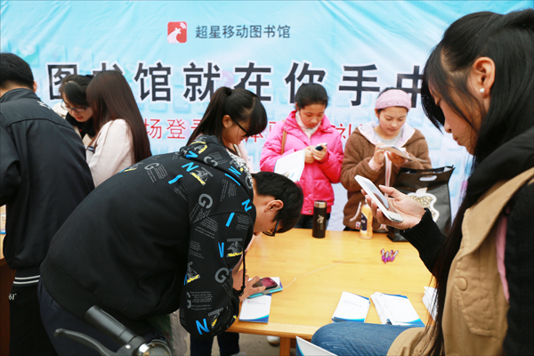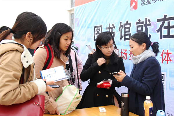 “同学你好,如果想下载移动图书馆,只需扫描我们宣传海报上的二维码就可轻松获得,这和用微信是一个道理。下载后会有一个图标,这个图标就意味着图书馆就在你的手中。”一位图书馆工作人员耐心地向前来体验移动图书馆的同学介绍。