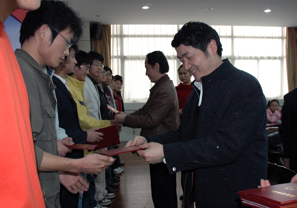 副院长时新中、张群分别为beat365官网32名国家奖学金获得者颁发了获奖证书并与获奖同学亲切留影。