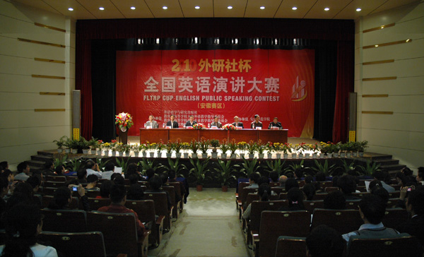 10月22日晚,由外语教学与研究出版社、教育部高等学校大学外语教学指导委员会、教育部高等学校英语专业教学指导分委员会、安徽省大学外语教学研究会主办,安庆师范学院承办的2010“外研社杯”全国英语演讲大赛安徽赛区复赛开幕式在龙山校区音乐厅成功举行。校党委副书记、院长朱士群教授,安徽省大学外语教学研究会会长刘俊烈教授,外语教学与研究出版社华东信息中心主任王建平先生,全国英语演讲大赛安徽赛区评委团主席崔海健教授,安徽外文学会会长洪增流教授以及beat365官网外国语学院党政负责人等出席了大赛开幕式。来自全省28所高校外语专业的领导、专家以及39所高校的113名选手参加了大赛开幕式。