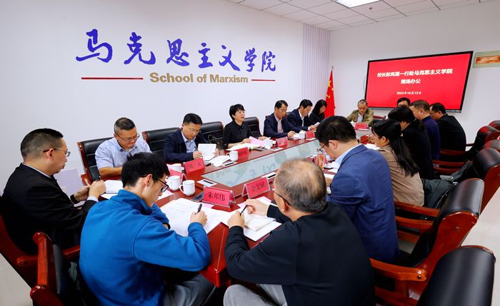 10月13日,校长彭凤莲深入马克思主义学院调研,召开推动贯彻执行《普通高等学校马克思主义学院建设标准(2023年版)》现场办公会。校党委常委陈秀、张红飞及党委宣传部、学科建设处、人事处、教务处、科研处、研究生院、财务处等单位负责人参加调研。