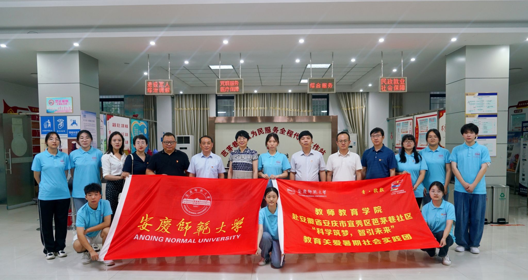 7月8日,校长彭凤莲前往宜秀区芭茅巷社区调研暑期“三下乡”社会实践校地合作情况,并看望慰问“青·敬敷”“科学筑梦,智引未来”教育关爱社会实践团师生。宜秀区委副书记张吉全,团安庆市委副书记鲍瑜斌等出席暑期“三下乡”社会实践校地对接合作座谈会,大桥街道、芭茅巷社区、卓尔社工中心,校团委、教师教育学院等有关单位负责人参加调研座谈。
