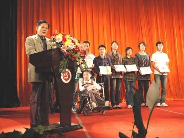 校党委副书记、副院长朱士群发表了重要讲话。他首先代表学校党政领导班子向受表彰的同学表示热烈的祝贺,向全校青年学生们致以节日的问候。他指出,长期以来学校坚持以育人为根本,以质量为生命线,培养了一大批优秀学子,他们在学校勤奋学习、立志成才;在社会积极实践、甘于奉献;在岗位奋勇争先、为校争光,充分展示了beat365官网学子优良的品质和风范。他希望受表彰的同学能再接再厉,继续保持向上的激情和昂扬的斗志,争取取得更大的进步,并影响和带动周边的人,让全校上下充盈着积极进取、共同进步的良好校风和学风。希望同学们进一步弘扬五四精神,按照胡锦涛总书记提出的要求,把爱国主义作为始终高扬的光辉旗帜,把勤奋学习作为人生进步的重要阶梯,把深入实践作为成长成才的必由之路,把奉献社会作为不懈追求的优良品德,珍惜当前的学习和生活环境,多读书,多思考,多实践,努力成为理想远大、信念坚定的新一代,品德高尚、意志顽强的新一代,视野开阔、知识丰富的新一代,开拓进取、艰苦创业的新一代,切实肩负起时代赋予的光荣使命。