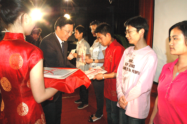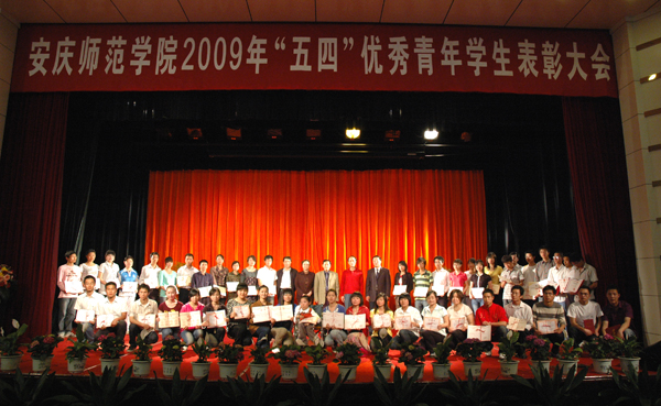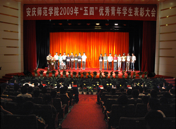 为进一步深入贯彻落实科学发展观,纪念五四运动九十周年,表彰优秀青年学生,5月4日下午,由学习实践活动领导小组办公室 、学生处和团委等单位共同组织的2009年“五四”优秀青年学生表彰大会在龙山校区音乐厅隆重举行。校党委副书记、副院长朱士群,党委委员、副院长时新中,党委副书记、纪委书记殷红,党委委员、副院长闵永新,副院长张群,党委委员、党办、院办、外事办公室主任、生命科学系书记刘友忠等校党政领导出席大会。各院系分管学生工作负责人,组织部、宣传部、党校、教务处、科技处、学科建设与研究生处、招生就业处各有关职能部门主要负责人,学习实践活动办公室有关人员、学生处全体工作人员,团委会全体委员及学生代表共400多人参加了会议。