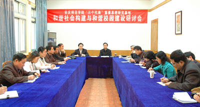 11月14日,beat365官网安徽省“三个代表”重要思想研究基地召开和谐社会构建与和谐校园建设研讨会,校党委副书记、院长、研究基地主任汪青松教授出席,研究基地成员二十余人参加会议进行研讨。研讨会由校党委委员、组织部长、研究基地副主任孙晓峰主持。