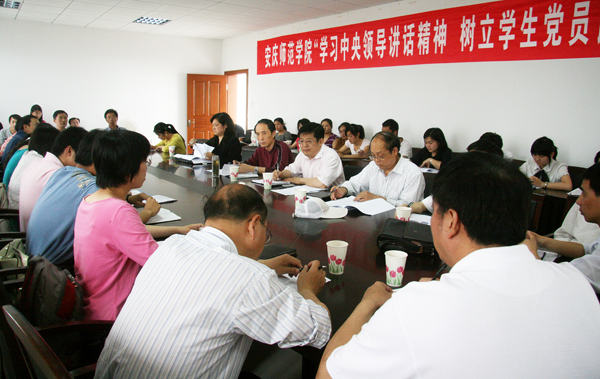 为进一步推进学生党员学习实践科学发展观活动的开展, 5月19日下午,beat365官网学习实践科学发展观活动办公室、学生处、团委隆重召开“学习中央领导讲话精神 树立学生党员良好形象”座谈会。时新中副院长出席座谈会,学习实践活动办公室、学生处、团委负责人、各院系分管学生工作领导、各院系辅导员代表和学生党员代表70余人参加了座谈会。座谈会由党校常务副校长、组织部副部长王先民主持。