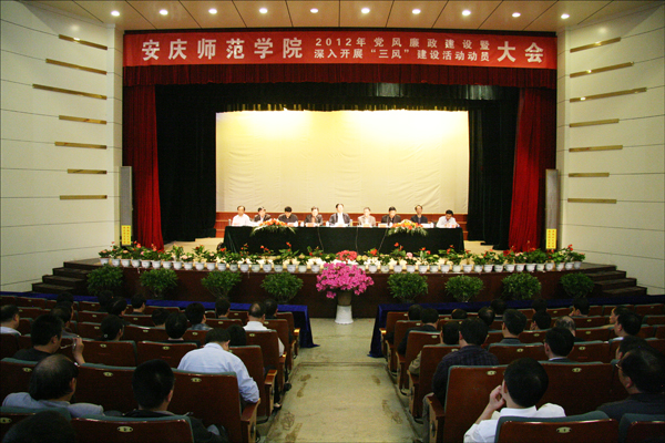 党委副书记、院长朱士群在会上作深入开展“教风学风作风”建设活动动员讲话。朱院长指出,教风学风作风是校风的重要组成部分,是校园文化的集中体现,是大学精神和品位的重要标志,是衡量办学治校水平的重要标准。深入开展“三风”建设是党委立足当前、着眼长远做出的一项重大决策。全校上下要统一思想,提高认识,切实增强深入开展“三风”建设活动的责任感和紧迫感。朱院长强调,党委将“三风”建设活动的时间跨度确定为“十二五”时期,分两个时段进行,2012年为集中建设时段,2013-2015年为巩固提高和建立长效机制时段。在活动中,要明确目标,突出重点,精心组织,周密部署,围绕教风、学风和工作作风三个方面,以系列活动为载体,认真开展建设活动,确保“三风建设”活动取得实效。朱院长要求,全体师生员工要从现在做起,从点滴做起,从自身做起,秉承“敬敷世范,勤学笃行”的校训精神,齐心协力,共同建设,扎实推进,为建设体现现代大学精神、富有安庆师范学院特色的优良教风、学风和作风而努力奋斗!
