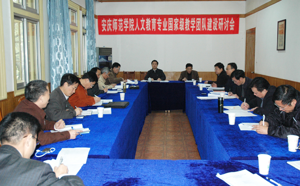 会上,教务处处长、人文教育专业国家级教学团队建设领导组副组长程曦介绍了《安庆师范学院人文教育专业国家级教学团队建设工作方案》,人文教育专业国家级教学团队建设领导组副组长黄兴帅介绍了《人文教育专业国家级教学团队申报情况及建设任务书》填报的有关情况。与会专家就团队建设工作方案和建设任务书进行了热烈的论证研讨。(文/图 计裕人)