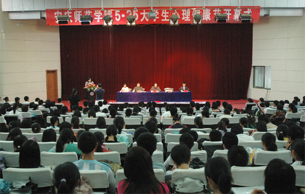 5月20日下午,由教育学院、校团委主办,教育学院团总支、07级应用心理学专业承办的安庆师范学院第三届5•25大学生心理健康节在龙山校区图书馆东报告厅隆重开幕。本次心理健康节本次心理健康节的活动主题是“悦动我心灵,驭翔我世界”。时新中副院长出席了开幕式。校团委、教育学院负责同志、部分师生共四百余人参加了开幕式。开幕式由教育学院党总支书记黄警钟主持。