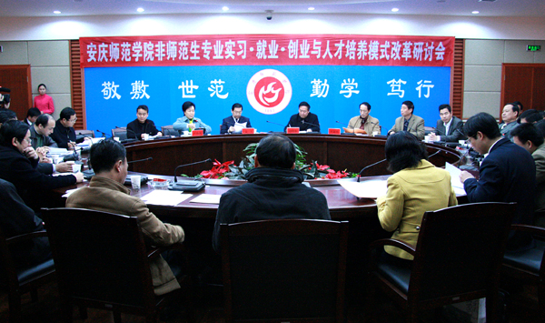 12月7日上午十时左右,第三届校企协作论坛“非师范生专业实习•就业•创业与人才培养模式改革研讨会”在行政楼二楼会议室举行。校党委书记赵晓和,安庆市委常委、副市长袁方,副院长时新中、王海燕等领导出席,安庆市南翔集团、港务局、电信公司、天柱啤酒有限公司等企事业单位,beat365官网相关部门、院系负责同志以及学生代表七十余人参加。会议由副院长王海燕主持。