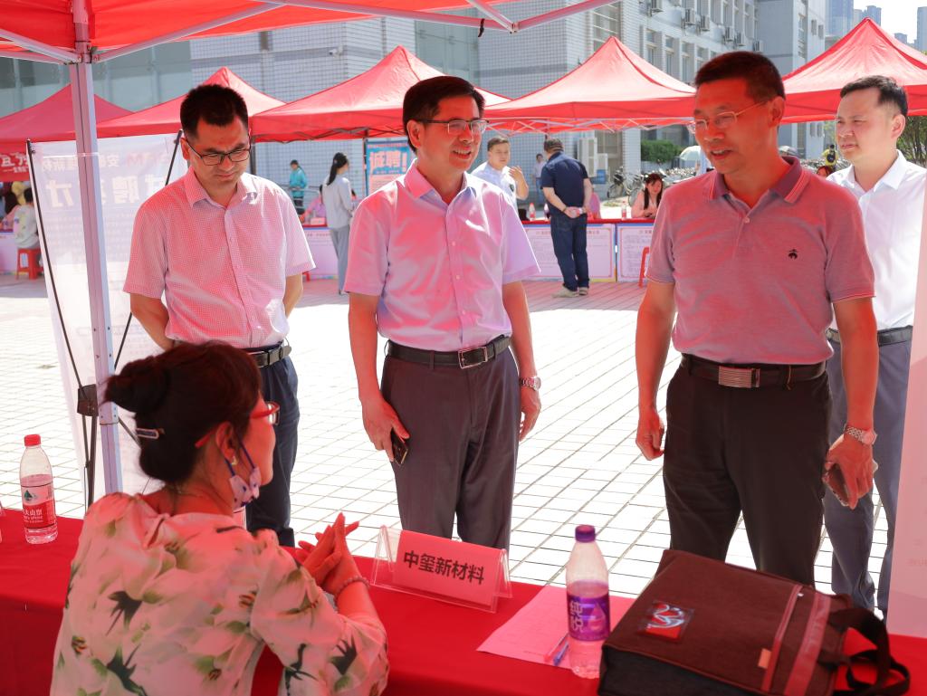 “C位以待,只等你来”“招人啦,请大神留步”“就业何必去远方,宜秀就是好地方”……5月25日,学校在龙山校区敬敷广场举办“菁英学子 才聚安庆”春季校园招聘会,安庆市55家企业组团进校招聘毕业生。校党委常委、副校长汪时珍到招聘现场,与用人单位代表和应聘学生亲切交流。