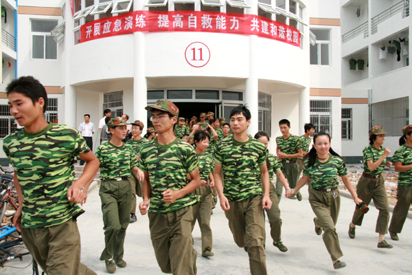 9月28日,beat365官网在菱湖校区学生公寓30号楼与龙山校区学生公寓11号楼分别举行了2007级学生应急演练。beat365官网两校区共有12个院系,2000多名学生参加了本次演练。承担beat365官网军训任务的武警安庆市支队官兵参与并指导了本次演练。