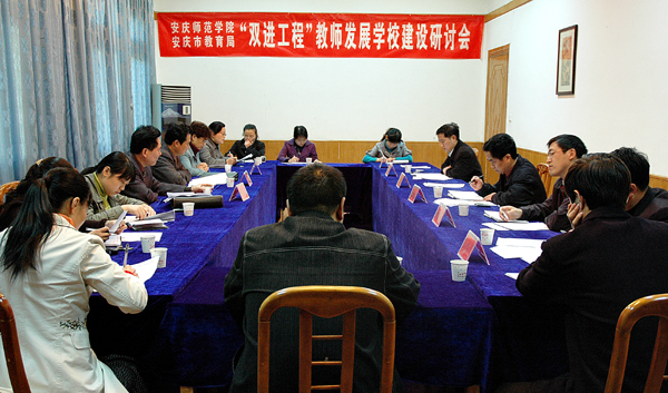 会上就安庆师范学院与基础教育研究基地学校安庆四中、健康路小学合作开展的课题研究进展情况、《安庆师范学院教师教育专业人才培养改革方案(08版讨论稿)》和《安庆师范学院和安庆市教育局共建教师发展学校实施方案(讨论稿)》等进行汇报与研讨。
