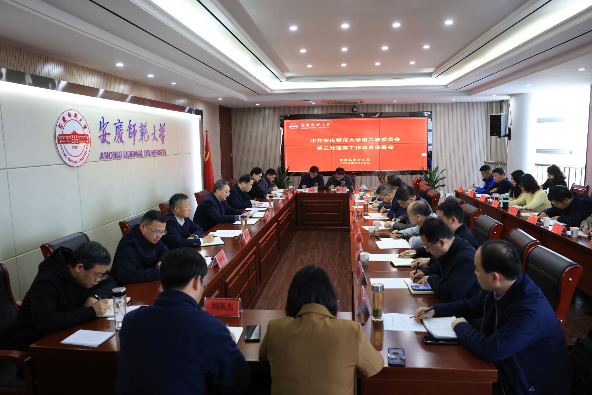 4月10日,学校召开二届党委第三轮巡察工作动员部署会。校党委书记、党委巡察工作领导小组组长李福华出席会议并作动员讲话。校党委副书记、党委巡察工作领导小组副组长崔明主持会议。校党委常委、纪委书记、监察专员、党委巡察工作领导小组副组长秦朗以及校党委常委、党委巡察工作领导小组成员陈秀、计裕人等出席会议。