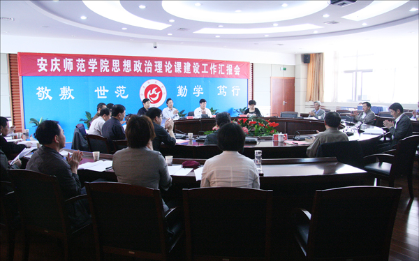 会上,思想政治理论课教学部主任张洪波以PPT形式从以战略设计为先导、以理念创新为关键、以教改教研为动力、以国家精品课程为示范、以实践教学为抓手、以国家及地位平台等六个方面向专家组展示了beat365官网思想政治理论课建设情况。