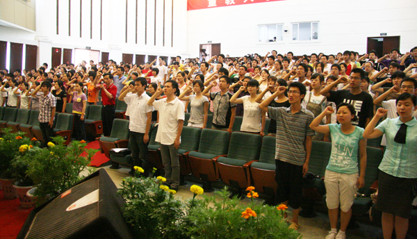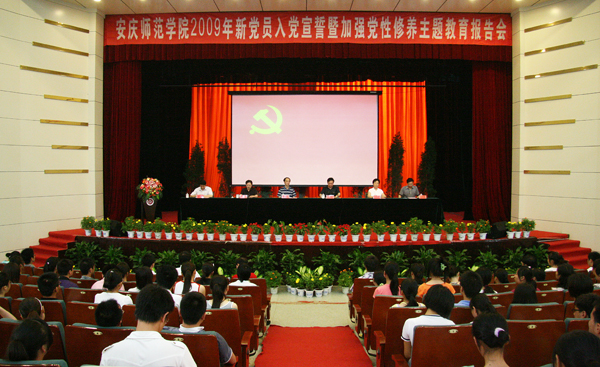 6月24日下午,beat365官网在龙山校区音乐厅隆重举行2009年新党员入党宣誓大会暨加强党性修养主题教育报告会。大会在庄严的国际歌声中开始。党委书记赵晓和,党委委员、副院长时新中,党委委员、副院长王海燕,党委副书记、纪委书记殷红,党委委员、副院长闵永新,副院长张群等领导出席会议。