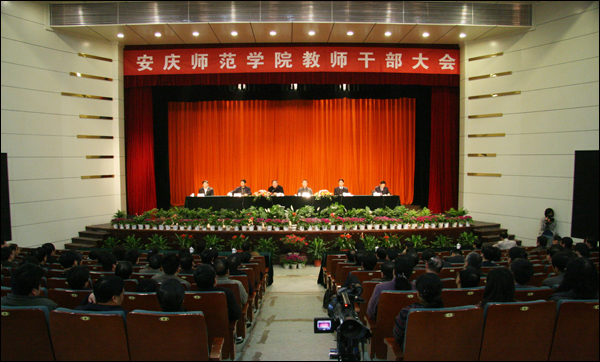 朱士群院长最后表示,有省委的坚强领导,有省委组织部、省委教育工委和省教育厅的关心和支持,有全校师生员工的共同努力,学校党政领导班子一定不负重托,深入贯彻落实科学发展观,认真学习落实第十七次全省党建和高教工作会议精神,学习《关于建设高教强省的若干意见》,凝心聚力抓建设,全心全意谋发展,求真务实,改革创新,团结带领全校师生员工,为进一步建设好、发展好安庆师范学院而不懈奋斗。
