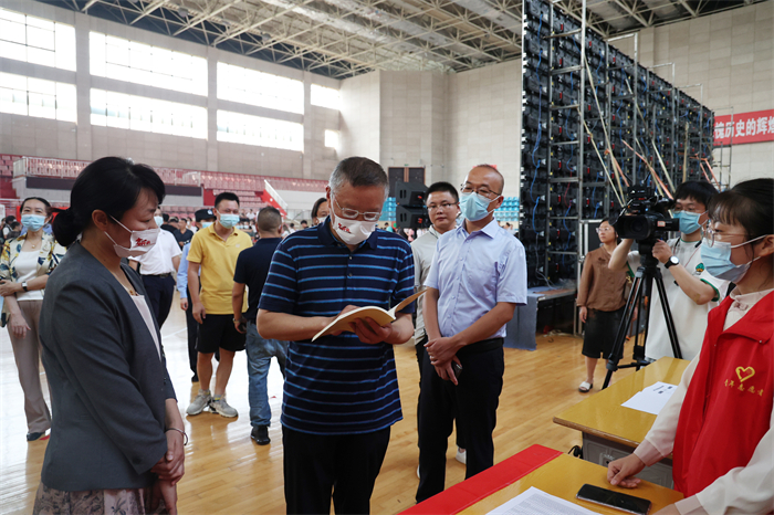9月9日一大早,校党政领导许继荣、闵永新、汪时珍、刘友忠、吴琼、肖新、陈秀等一行来到新生入校核验区、测温区、核酸检测区、各学院新生接待点等处,了解各学院迎新工作安排以及新生报到情况,看望正在参加迎新工作的志愿者。校党政领导要求全体工作人员严格落实学校疫情防控工作,确保新生“三天两检”,同时做好各项志愿服务工作,为新生提供周到满意的服务。迎新现场,校领导和新生亲切交谈,勉励新生尽快适应校园生活,珍惜韶华,刻苦学习,奋发成才。