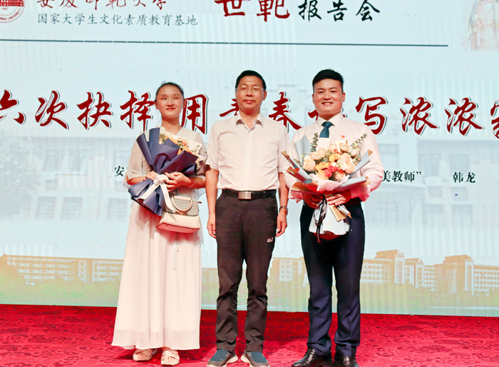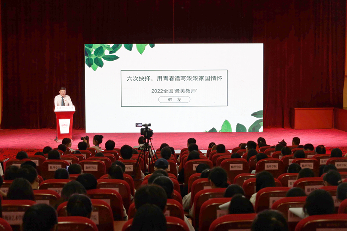 汪时珍指出,党的十八大以来,以习近平同志为核心的党中央将教师队伍建设摆在突出位置,作出了一系列重大决策部署。每逢教师节来临,习近平总书记或者深入学校看望教师学生,或者以书信形式向全国广大教师和教育工作者致以崇高的节日敬礼和祝贺,表达对全国教师的关心关怀、对教育改革和教师工作的殷切期望,充分体现了党和国家对教育事业的高度重视和对广大教师的特殊厚爱。汪时珍介绍了韩龙在18年里实现的六个人生梦想:大学梦、军旅情、创业路、教师缘、援疆行、援藏行。汪时珍指出,韩龙取得的这份成就既是他个人长期努力奋斗的结果,也是对beat365官网长期落实立德树人根本任务、坚持“五育并举”教育理念的肯定。汪时珍勉励广大师范生应坚定理想信念,紧跟党走,紧贴时代脉搏,脚踏实地,立足基层,毕业后投身于祖国和人民最需要的地方,努力成长为党和人民满意的“四有”好老师,实现教育报国的人生目标。