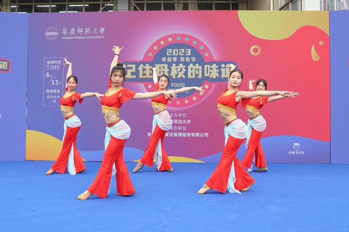 盛装亮相、挥舞水袖、衣袂翻飞……徽风皖韵在动作变换与温婉小调中流转。美食节舞台上,黄梅戏表演专业的学生为毕业生们带来了《爱歌》《水袖组合》,精彩的表演引得台下掌声不断,欢快的氛围将美食节推向了高潮。