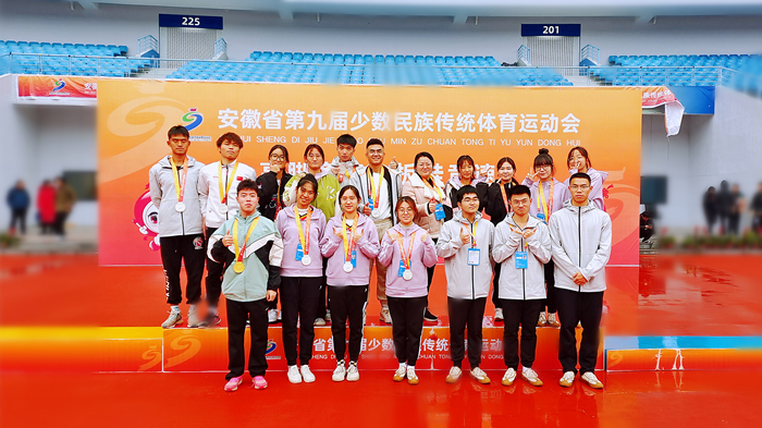 11月26日至11月30日,由安徽省人民政府主办,安徽省民族事务委员会、省体育局和滁州市人民政府共同承办的第九届少数民族传统体育运动会在滁州市举行。beat365官网36名少数民族运动健儿参与板鞋竞速、高脚竞速、民族健身操三项比赛,获得1金3银4铜的优异成绩。
