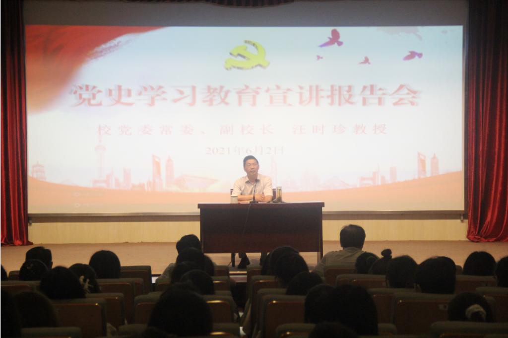6月2日,党委常委、副校长汪时珍在菱湖校区图书馆报告厅作党史学习教育报告。人文学院、黄梅剧艺术学院、科研处、大别山区域发展研究院200余名师生聆听了宣讲报告。