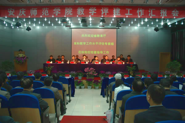 安庆师范学院院长汪青松教授向省评估专家组作本科教学工作汇报。汪院长从“抢抓机遇,实现学校跨越式发展”,“改革创新,大力推进质量立校战略”,“文化育人,形成鲜明的办学特色”,“科学规划,开创学校可持续发展的新阶段”等五个方面,全面总结了学校近年来坚持教学中心地位,改革创新,凝练特色,在教书育人等学校建设各个方面实现的跨越式发展。