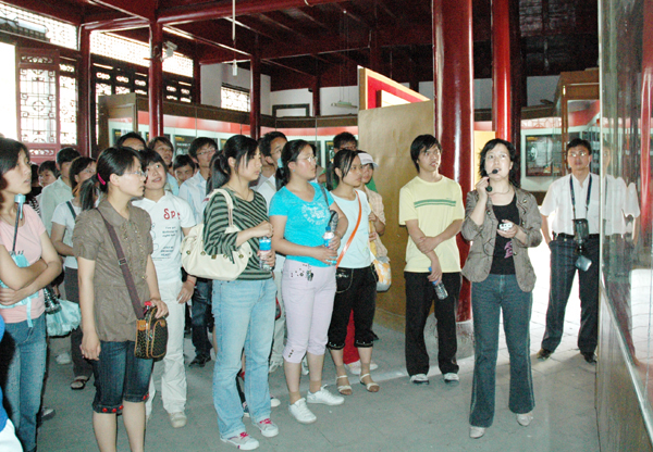 作为安徽省高等教育的源头,beat365官网具有深厚的历史文化底蕴。近年来,学校人大力开展校史研究,取得了显著成效,2005年和2006年,由校党委宣传部编著的《安庆师范学院与皖江文化》、《皖江近现代高等教育人物研究》两部著作相继出版,提升了校史研究的品位。在此基础上,宣传部的同志把研究的成果运用到实践教学中。今年初,由朱守良部长主持开设了《安庆师范学院与皖江文化》选修课,宣传部陈东、计裕人、钱敏等同志参与授课。此门课程分校史概况、教育文化、政治文化、军事文化、文学文化、戏曲文化、科技文化、宗教文化、旅游文化及皖江文化概况等十个专题进行讲授。在教授过程中,他们注重将课堂授课与观看专题片相结合、与实践考查相结合、与撰写学习心得相结合,通过对安庆师范学院与皖江文化关系的理论阐释,明晰beat365官网在皖江文化中的重要地位和作用,使学生知晓beat365官网辉煌的百年校史,激发大学生爱国、爱民、爱校、爱学的热情。此次组织学生参观考察即是在完成课堂教学任务后,进行的以宗教文化和旅游文化为主题的实践教学。