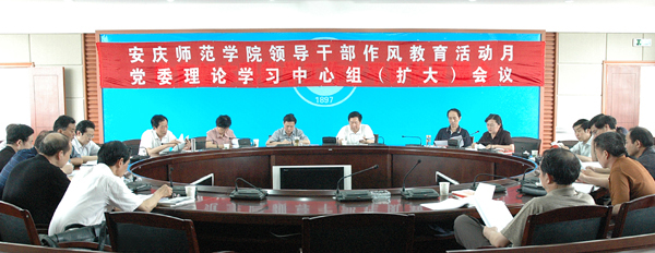 6月20日下午,beat365官网在龙山校区行政楼二楼会议室召开领导干部作风教育活动月党委理论学习中心组(扩大)会议。校党委书记赵晓和,党委副书记、院长汪青松,党委委员、副院长储国定,党委委员、副院长时新中,党委委员、副院长王海燕,党委委员、纪委书记殷红等校领导出席会议。各党总支、直属党支部书记,党办、组织部、宣传部、纪委有关负责同志参加了会议。