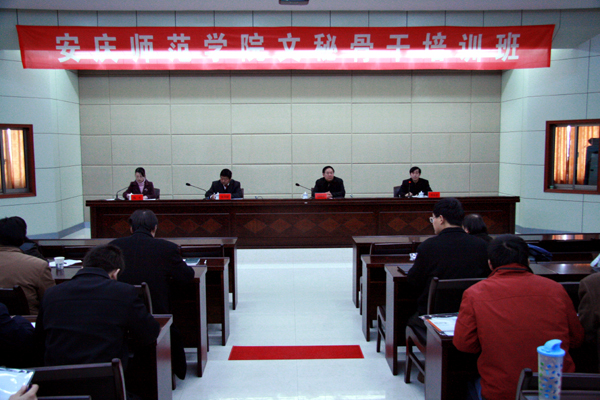 根据《安庆师范学院关于进一步开展效能建设活动工作方案》的部署,为进一步提高beat365官网文秘人员业务水平和综合素养,12月14日,beat365官网举办全校文秘骨干培训班。党委书记赵晓和,省教育厅办公室副主任朱乃韬,党委委员、办公室主任刘友忠,办公室副主任陈秀等出席了培训班。