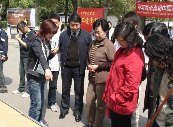 副院长王海燕、张群对图片展给予了高度评价。王海燕副院长指出,此次环保图片展是贯彻落实十七大精神,使“生态文明观念在全社会牢固树立”,一次十分有意义的活动。图片所展现的可可西里以前的迷人风光和目前的生态环境破坏情况形成了鲜明对比,给人以心灵的震撼,引发人的思考,对在校大学生一种很好的教育。她希望资源环境学院的广大师生积极广泛开展环境保护知识、政策、法律法规,弘扬环境文化,倡导生态文明,营造全社会关心、支持、参与环境保护的氛围,提高全民保护生态环境的自觉性。张群副院长要求资源环境学院打好环保这张牌,把环保特色做亮,做成学校的品牌。他希望此类活动能够经常开展,使“科学发展看环保、和谐社会看民生”成为全社会的共识。