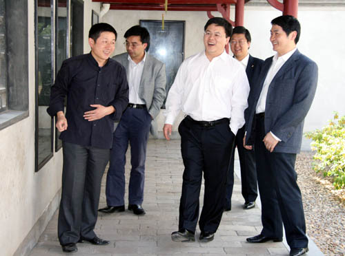 在菱湖校区,宋毅同志在张群副院长的陪同下,兴致勃勃地参观了beat365官网大学生文化素质教育基地——敬敷书院,在观看了皖江文化名人的碑刻,听取了beat365官网早期历史的介绍后,他对beat365官网深厚的人文文化底蕴和悠久的办学历史给予了高度的评价。