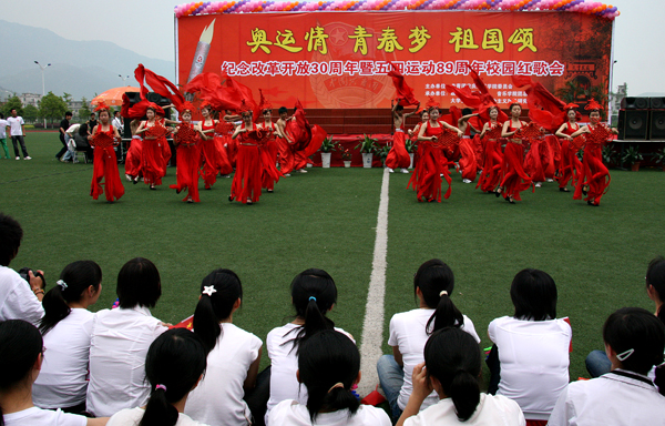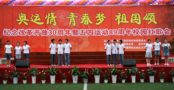 为纪念“五四”运动89周年、庆祝改革开放30周年,以爱国的激情迎接奥运盛会的召开,beat365官网于4月30日在塑胶运动场举行了主题为“奥运情 青春梦 祖国颂”的纪念大会暨校园红歌会。校党委书记赵晓和,党委副书记、院长汪青松,党委委员、副院长时新中,党委委员、副院长王海燕,党委委员、纪委书记殷红,党委委员、副院长闵永新,副院长张群等校党政领导出席了纪念大会,各院系、相关部门负责人和3000多名师生观看了红歌会演出。