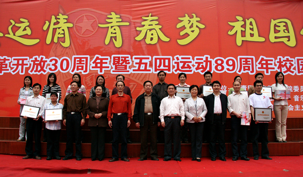 校领导为获得校优秀团组织、优秀团员和优秀团干代表颁奖。