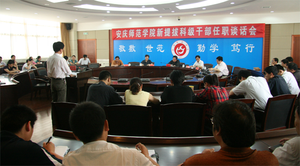 会上,组织部副部长王先民同志宣读了党委组织部关于科级干部任职通知。资源与环境学院实验室主任徐先海博士和党办(院办、外事办)秘书査志伟分别代表院系和管理单位新提拔科级干部作了表态发言。与会新提拔的科级干部,会后通过不同途径,纷纷向党委组织部反映:这次集体谈话会规格高,质量高,效果好;是一次生动的岗前培训课;尤其是赵书记的重要讲话,高屋建瓴,旁征博引,理论联系实际,深入浅出,生动形象,给人印象深刻,使大家受益良多,倍受教育和鼓舞。(文/组织部 图/宣传部)