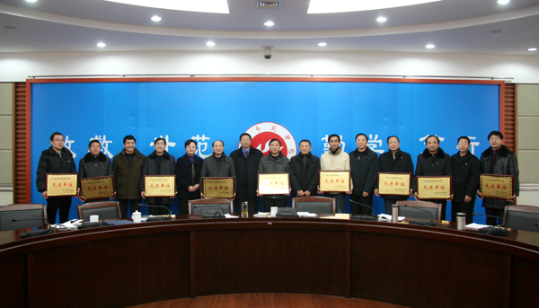 校领导为在2011年度处级领导班子考核中获得“优秀”的单位颁发了奖牌。