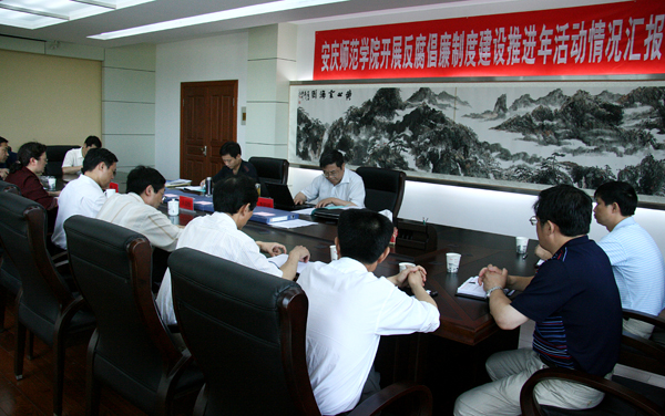 学校召开了反腐倡廉制度建设推进年活动汇报会。校推进年活动领导小组副组长、院长汪青松,纪委书记殷红出席会议,领导小组办公室成员、文学院党总支负责人参加会议。党委副书记、院长汪青松主持会议,对督查组到beat365官网检查指导工作表示热烈欢迎。