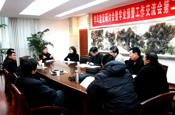 时新中副院长在会上发表了重要讲话。他认为,从总体上看,beat365官网学风建设认识是到位的,措施是得力的,效果也是明显的。学校学习风气浓厚,学生综合素质不断提高,学生创新能力和实践水平显著提升,学生违纪率得到明显抑制,毕业生文明离校。他指出,我们在看到成绩的同时,也要看到不足,要多思考、多研究,多做对学生有利有用的事,认真做好职业生涯规划大赛、创业设计大赛、挑战杯等能够培养学生职业能力和创新素质的赛事活动。他强调,学风建设是一项整体要求,必须渗透在学校工作的每一个环节,开展学风建设和学业预警,一要严,要严格管理,严格教育;二要爱,以激励为主,对学生充满爱心,全心全意地爱学生。在具体工作中,应该将学风建设的要求进行细化,落实为可以操作的工作方案,分年级、分阶段展开,体现专业特色和个性要求。各院系、各部门要转变工作思路,落实管理中心下移,进行创造性工作。