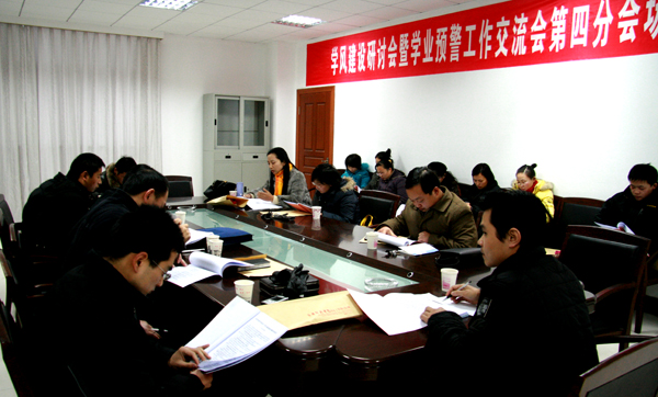 本次分两个阶段进行,第一阶段,化学化工学院、人文与社会学院和教育学院介绍学风建设和学业预警方面的经验和成果,相关职能部门负责人解读《安庆师范学院关于进一步加强学风建设的若干意见》、《安庆师范学院关于学生素质综合测评的意见》和《安庆师范学院学生“四成”教育工作评估办法》等三项文件征求意见稿;第二阶段,参会人员分为四个小组,进行研讨。在分组讨论交流会上,参会人员围绕会议主题和文件征求意见稿进行了充分而热烈的研讨,会议取得了丰硕成果。
