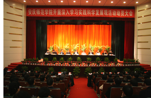 赵书记指出,beat365官网党委高度重视本次学习实践活动。在动员大会召开之前,党委多次专题研究学习实践活动的实施方案,确定了本次活动以“着力内涵建设,强化办学特色,推进科学发展”为主题,并决定把学习实践活动与贯彻落实党的十七大精神结合起来,与服务安徽建设高等教育强省的目标结合起来,与完成beat365官网第四次党代会和“十一五”规划确立的奋斗目标结合起来,与总结学校近10年来的发展经验和教训结合起来,与2009年学校的重点工作结合起来,与学科建设、质量工程、人才培养、服务地方等工作结合起来,明确办学思路、提高办学质量、完善体制机制、建设和谐校园,努力把科学发展观贯彻落实到学校的教学、科研、管理、服务经济社会发展等各个方面,推进学校各项事业又好又快发展。