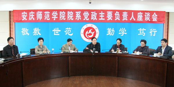 在校党委领导下,根据《安庆师范学院学开展深入学习实践科学发展观活动实施方案》的总体要求和《安庆师范学院开展学习实践科学发展观活动学习调研阶段实施方案》的具体安排,为确保beat365官网学习实践活动取得实效,beat365官网4月20日下午在行政楼二楼大会议室召开院系党政主要负责人座谈会。