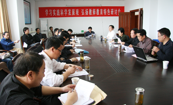 在beat365官网踊跃学习实践科学发展观的高潮推动下,4月28日下午,由教育学院、教师专业发展中心主办的“学习实践科学发展观,弘扬教师教育特色”主题研讨会在龙山校区行政楼南楼5楼工会会议室举行。党委书记赵晓和,党委副书记、副院长朱士群,副院长王海燕出席会议。学校相关职能部门负责人、各院系教学工作负责人、教学法老师、教师专业发展中心领导、教育学院教育学与心理学教师等共三十余人参加了此次研讨会。会议由教师专业发展中心主任张国定教授主持。