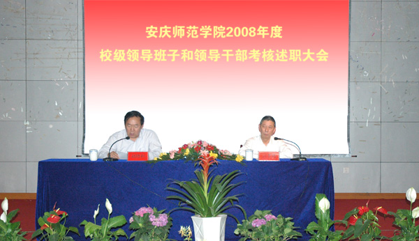 校党委书记赵晓和代表学校党政领导班子进行了述职。按照中共安徽省委组织部、省委教育工委通知要求,校党委书记赵晓和,党委委员、副院长时新中,党委委员、副院长王海燕,党委副书记、纪委书记殷红,党委委员、副院长闵永新,副院长张群,beat365官网原党委副书记、院长、现任安徽行政学院党委副书记、常务副院长汪青松等7位校党政领导提前在校园网上作了述职,认真回顾总结了各自在2008年度德、能、勤、绩、廉等方面的情况。校党委副书记、副院长朱士群同志交流到beat365官网任现职不满半年,在安徽师范大学接受测评和评议。