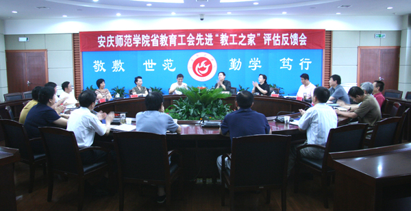 省教育工会主席、评估组组长王昆奇代表评估检查组发表了评估意见。检查组指出,安庆师范学院已形成党政工共建教工之家的良好氛围,工会和教代会各项工作已进入安徽省高校先进教工之家行列,同意授予安庆师范学院工会安徽省“高校先进教工之家”称号。检查组认为,安庆师范学院党委、行政对工会工作和建家活动重视支持,认识到位,形成了党政工共建“教工之家”的良好氛围,学校的民主政治建设走上了制度化、规范化的轨道,教代会和工会工作成效显著。检查组认为,安庆师范学院工会工作抓住服务大局的切入点,激发广大教职工爱岗敬业、争创一流的积极性,关心青年教师成长,大力开展“送温暖,献爱心”,扶贫济困活动,重视女教职工工作,发挥女工委作用,开展丰富多彩的文化体育活动,满足不同群体教职工的业余文化需求,丰富了教职工精神文化生活,激发了广大教职工爱校如家的主人翁意识,在学校各项工作中起到了齐抓共管合力作用,促进了校园和谐。