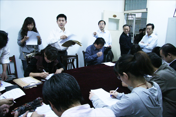 在8号学生宿舍二楼辅导员、管理员联合值班室,由学生处主办的大学生思想政治教育进公寓辅导员座谈会正在这里举行。专家组检查了辅导员值班制度,查看了值班记录,“辅导员进公寓值班制度能够长期坚持下来很不容易”。