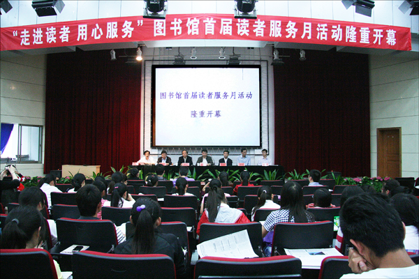图书馆馆长许昆云介绍了首届 “读者服务月”活动的主要内容。图书馆馆员代表、学生读者代表分别在仪式上作了发言。图书馆副馆长汪健主持开幕式。