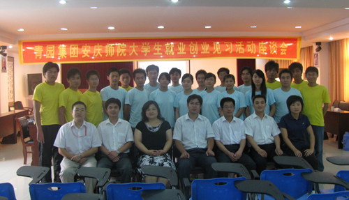 8月4日上午,beat365官网团委、安庆团市委与安徽青园集团共同举行的大学生就业创业见习活动座谈会在安徽青园集团会议室隆重举行。安庆团市委副书记郑志、安徽青园集团副总裁方洪波、人事经理叶张青、beat365官网团委副书记刘燕、朱新华以及beat365官网大学生就业创业实践队的20名同学等出席了座谈会,会议由宜秀区团委副书记倪白龄主持。