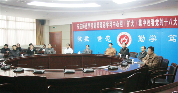 在龙山校区行政楼二楼会议室收看现场,校党政领导何小祥、闵永新、刘友忠、陈光明、方锡球与机关各职能部门负责同志一起实时收看了十八大开幕式。大家对胡总书记《坚定不移沿着中国特色社会主义道路前进 为全面建成小康社会而奋斗》的报告反响强烈,收看现场掌声不断。收看现场,领导们神情极为专注,大家认真地听报告,做笔记。大会结束后,校党委书记何小祥指出,今天只是一个学习的开始,今后校党委将在全校师生中做出全面的学习部署,在实际工作中进一步深入学习贯彻十八大精神,努力把学校建设成为应用性突出特色鲜明的高水平大学,为安徽经济社会发展做出更大的贡献。